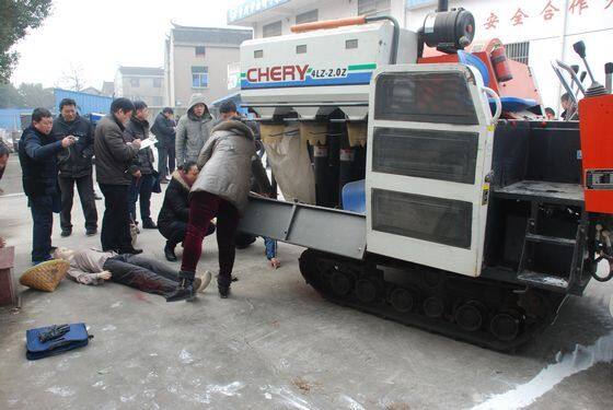 理论知识教学方面,设置了事故处理工作及人员行为规范、违法行为及事故查处、装备使用操作、事故处理办法解读4个理论讲座,邀请基层监理机构或有关行业、企业专家讲解有关基础知识;事故现场勘查技能教学方面,在常州市金种子农机专业合作社内设置了模拟事故现场,邀请公安部门有关事故处理方面的专家,对照拖拉机田间撞人模拟事故,讲解事故现场保护、人员查证、拍照、现场图绘制、现场勘查笔录制作等,演示如何开展事故现场勘查工作,让参训学员对事故现场及现场勘查等有了较为全面的感性认识;实践操作方面,将参训学员分成10个小组,对设置的模拟事故进行处置,让每位学员都能亲身实践并完成模拟事故的接报记录、现场勘查、立案调查、询问记录、责任认定、档案制作等业务工作。
